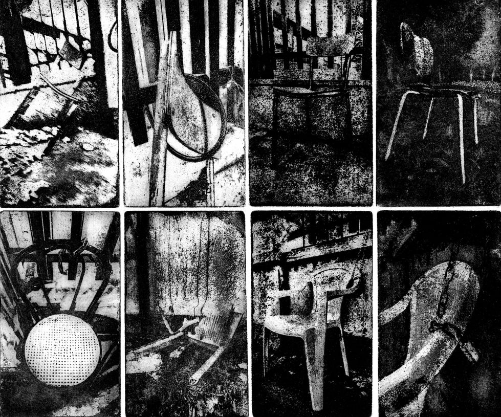 I made the first engravings starting from the photographs of the chairs of the prostitutes in my area.